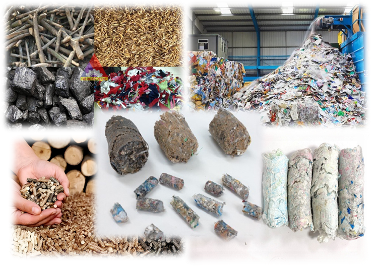 Chất thải ở đây được hiểu là nguồn sinh khối hay còn gọi là biomass chủ yếu từ thực vật, chúng có thể là một dạng nguyên liệu đơn lẻ về thành phần, cũng có thể là dạng phối trộn nhiều loại với nhiều thành phần khác nhau, bao gồm cả gỗ, gỗ thừa và những phụ phẩm từ ngành nông nghiệp, cây trồng công nghiệp: mùn cưa, bột gỗ, cỏ, trấu, rơm rạ, lá cây, vỏ trái cây, và cả các loại từ rác thải sinh hoạt, rác thải công nghiệp: giấy thải, bao bì nhựa, tro xỉ, lốp xe, vải, … trữ lượng sinh khối này khi chuyển về năng lượng sinh khối sẽ chiếm phần trăm rất lớn so với tổng tiềm năng năng lượng tái tạo của cả nước. Nhóm này được gọi chung là nhóm sản phẩm nhiên liệu sinh học rắn và nhiên liệu tái chế dạng rắn.