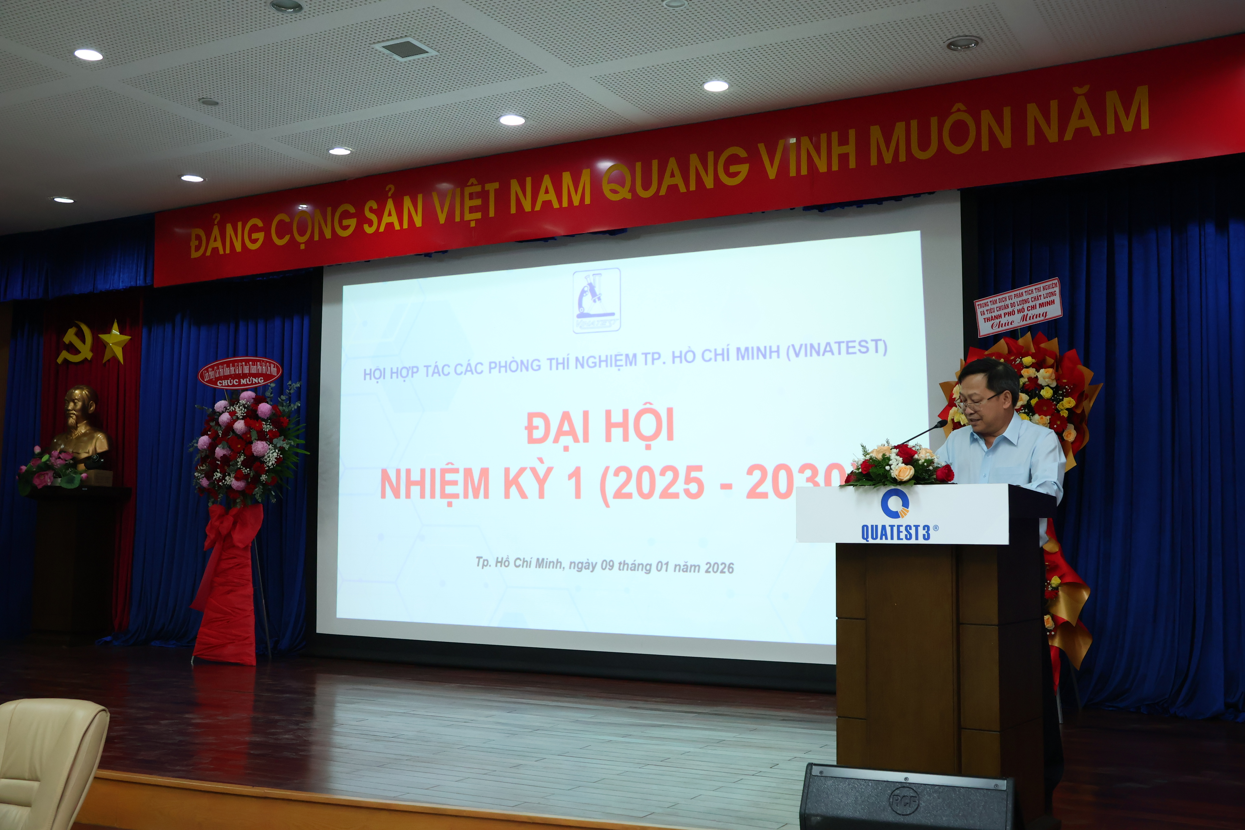 Thực hiện chủ trương của UBND TP. Hồ Chí Minh tại Quyết định số 1555/QĐ-UBND ngày 12/09/2025 về việc chuyển đổi các Hội quần chúng được thành lập trên địa bàn tỉnh Bình Dương, tỉnh Bà Rịa-Vũng Tàu, TP. Hồ Chí Minh (cũ) thành Hội quần chúng trên địa bàn TP Hồ Chí Minh (mới). Theo đó có việc chuyển đổi Hội Hợp tác các Phòng thí nghiệm TP Hồ Chí Minh thành Hội Hợp tác các Phòng thí nghiệm TP Hồ Chí Minh (mới). Được sự chấp thuận của Sở Nội vụ TP. Hồ Chí Minh tại công văn số 12270/SNVTCCB&TCPCP ngày 29/12/2025 cho phép Vinatest tổ chức Đại hội lần thứ 1, nhiệm kỳ 2025-2030, tại Hội trường Trung tâm Kỹ thuật Tiêu chuẩn Đo lường Chất lượng 3 (QUATEST 3) ở Khu Công nghiệp Cát Lái, TP. Hồ Chí Minh.