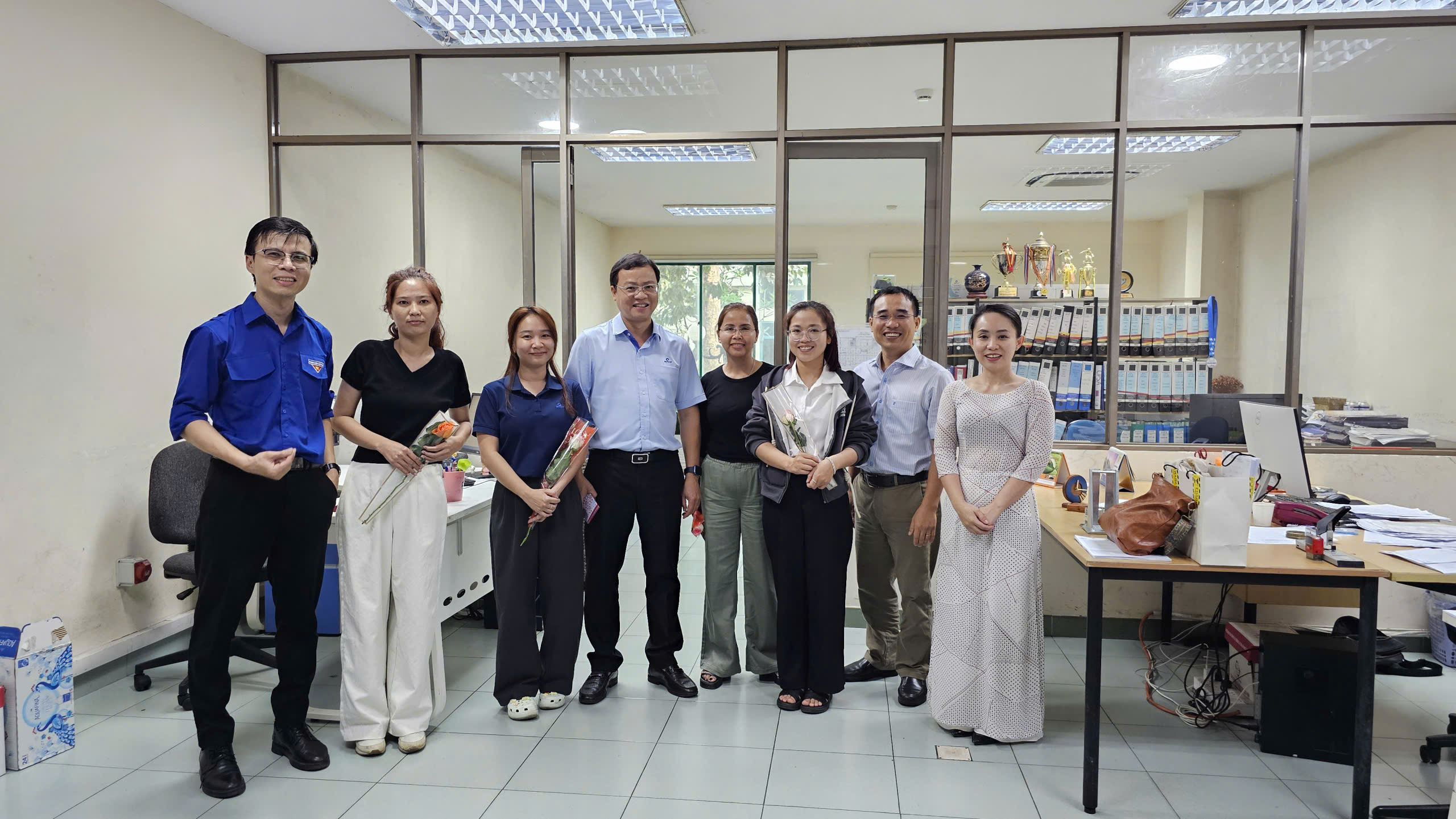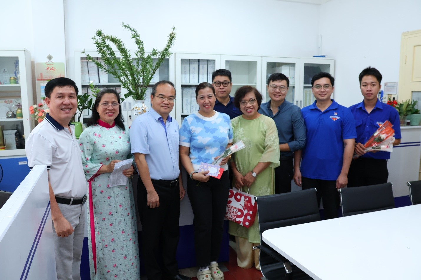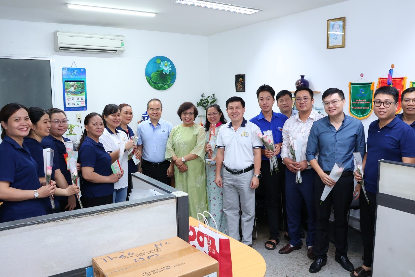 Đại diện Đảng ủy, Ban Giám đốc, ông Trần Quốc Dũng – Giám đốc Trung tâm đã cùng đại diện Ban Chấp hành Công đoàn và Đoàn Thanh niên QUATEST 3 đến từng địa điểm làm việc của Trung tâm để tận tay trao gửi những bó hoa tươi thắm, những phần quà ý nghĩa thiết thực, cùng những lời chúc mừng thân tình, ấm áp, tốt đẹp nhất đến từng nữ cán bộ, viên chức người lao động của Trung tâm.