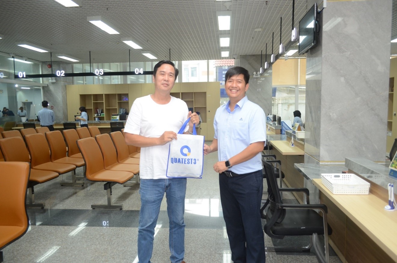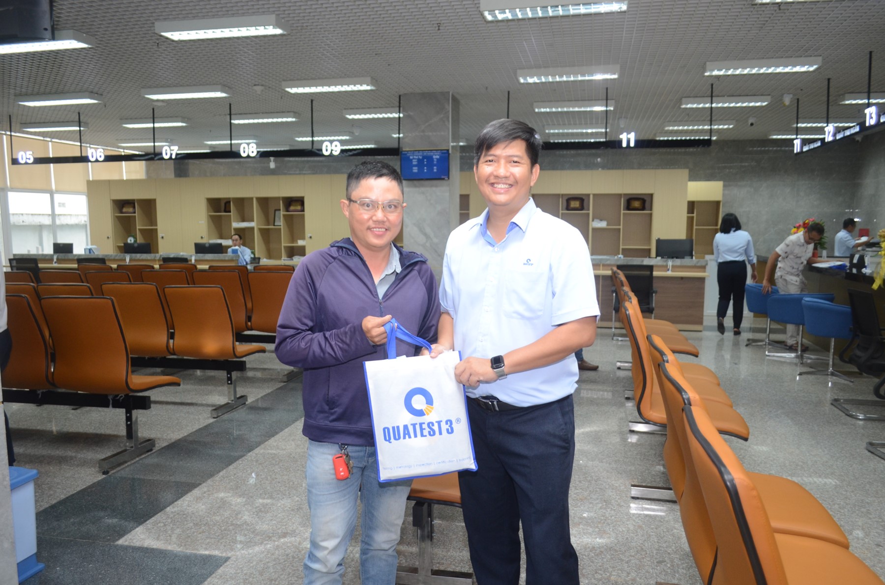 Những khách hàng may mắn nhận quà từ Ban Giám đốc và đại diện Phòng Dịch vụ khách hàng trao tặng tại buổi khai trương văn phòng giao dịch mới của QUATEST 3