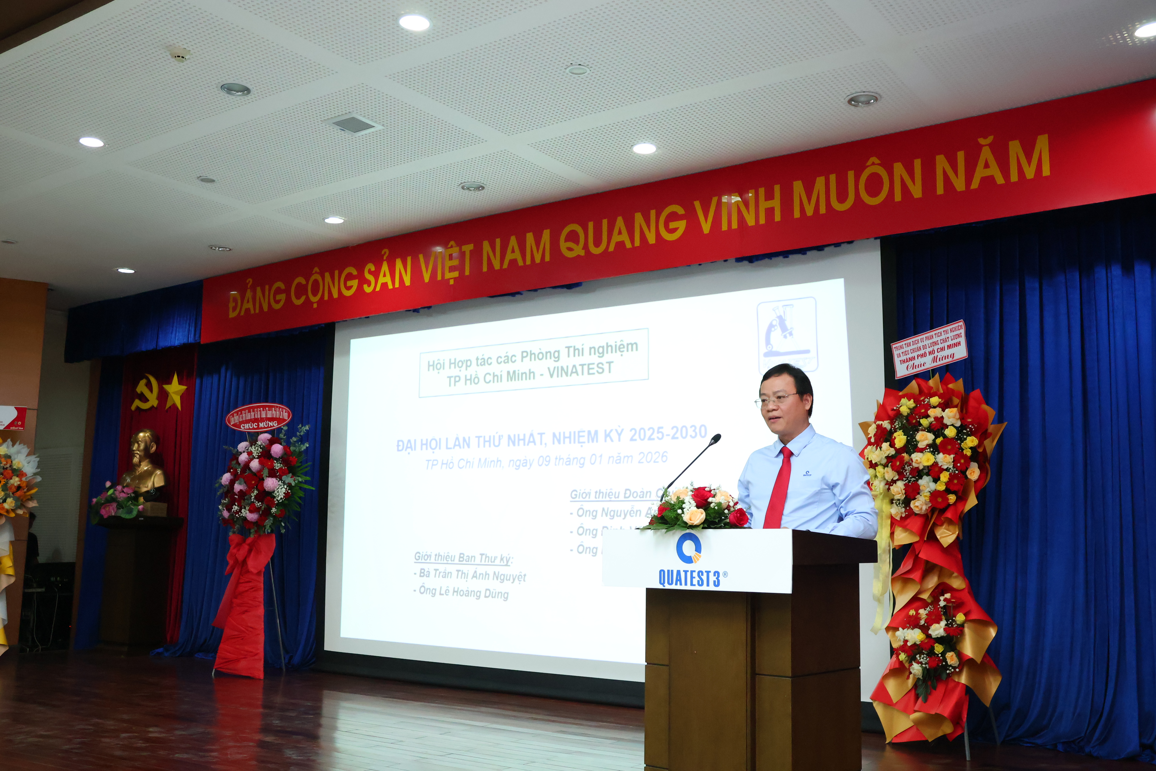 Thực hiện chủ trương của UBND TP. Hồ Chí Minh tại Quyết định số 1555/QĐ-UBND ngày 12/09/2025 về việc chuyển đổi các Hội quần chúng được thành lập trên địa bàn tỉnh Bình Dương, tỉnh Bà Rịa-Vũng Tàu, TP. Hồ Chí Minh (cũ) thành Hội quần chúng trên địa bàn TP Hồ Chí Minh (mới). Theo đó có việc chuyển đổi Hội Hợp tác các Phòng thí nghiệm TP Hồ Chí Minh thành Hội Hợp tác các Phòng thí nghiệm TP Hồ Chí Minh (mới). Được sự chấp thuận của Sở Nội vụ TP. Hồ Chí Minh tại công văn số 12270/SNVTCCB&TCPCP ngày 29/12/2025 cho phép Vinatest tổ chức Đại hội lần thứ 1, nhiệm kỳ 2025-2030, tại Hội trường Trung tâm Kỹ thuật Tiêu chuẩn Đo lường Chất lượng 3 (QUATEST 3) ở Khu Công nghiệp Cát Lái, TP. Hồ Chí Minh.