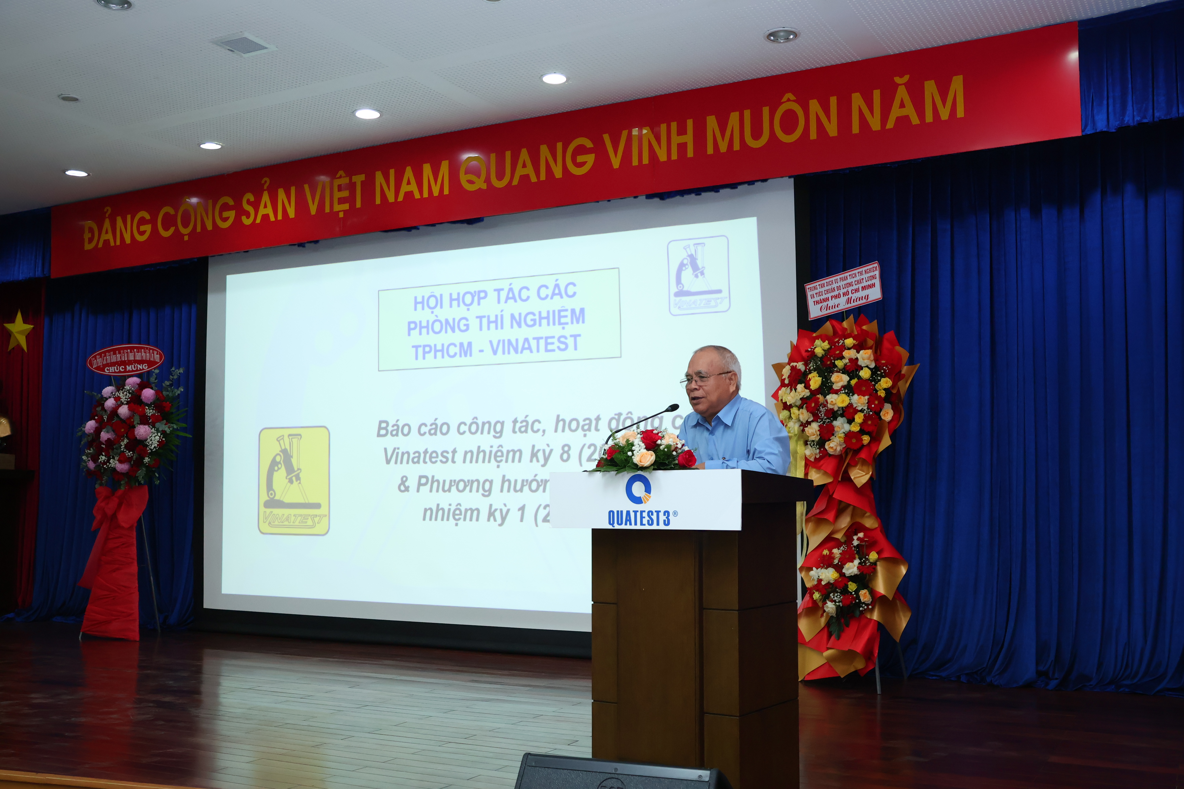 Ông Trần Quốc Dũng - Giám đốc QUATEST 3 (cơ quan bảo trợ cho Vinatest từ những ngày đầu thành lập) đã có lời chúc mừng đến đại hội và ông nhận xét hoạt động của hội trong thời gian qua đã có những thành quả nhất định, đóng góp vào sự nghiệp tiêu chuẩn, đo lường, chất lượng, và qua đó hình thành nên được một mạng lưới các PTN trên địa bàn để có thể thực hiện công tác thí nghiệm cho mọi ngành. Giám đốc Trung tâm Kỹ thuật 3 khẳng định tiếp tục bảo trợ cho hoạt động của Vinatest trong thời gian tới và mong muốn các PTN trong hệ thống ngày càng có được năng lực thí nghiệm phát triển. Đề nghị Vinatest và có thể thông qua LHH có chương trình, kết hoạch hỗ trợ cho các cấp chính quyền địa phương thêm một số thông tin về các quy định, các kiến thức quản lý chất lượng sản phẩm, quản lý đo lường v.v.. trong bối cảnh được giao quản lý một số chức năng mới này. Phần bầu cử đã tiến hành theo đúng thủ tục và đại hội đã bầu ra BCH, Ban Kiểm tra, Chủ tịch, các Phó chủ tịch và Tổng thư ký. Chủ tịch Vinatest nhiệm kỳ 1, ông Nguyễn Anh Triết đã phát biểu, cám ơn sự tham dự và đóng góp tích cực của lãnh đạo, các vị khách quý và hội viên để cho đại hội được thành công tốt đẹp.