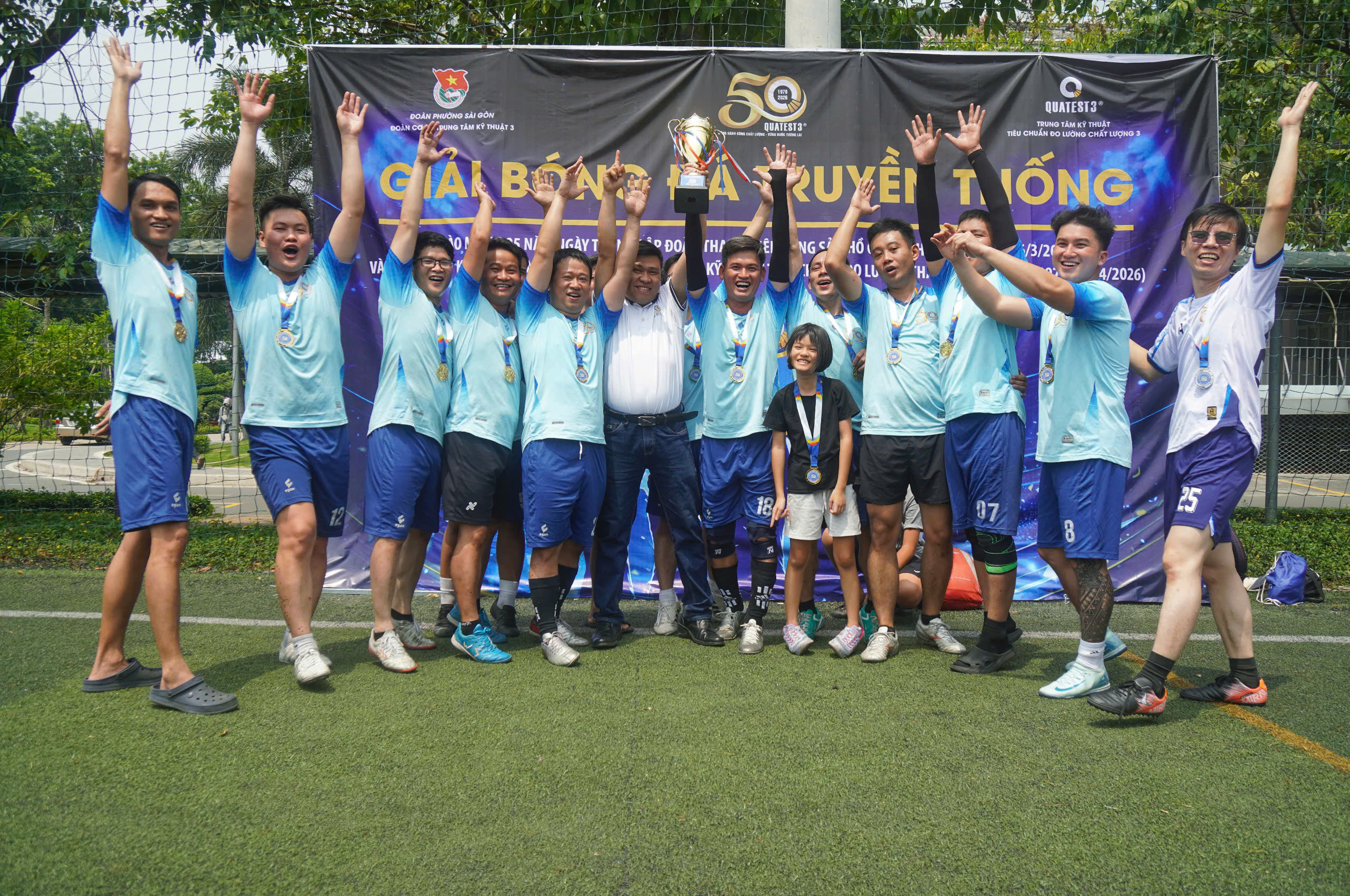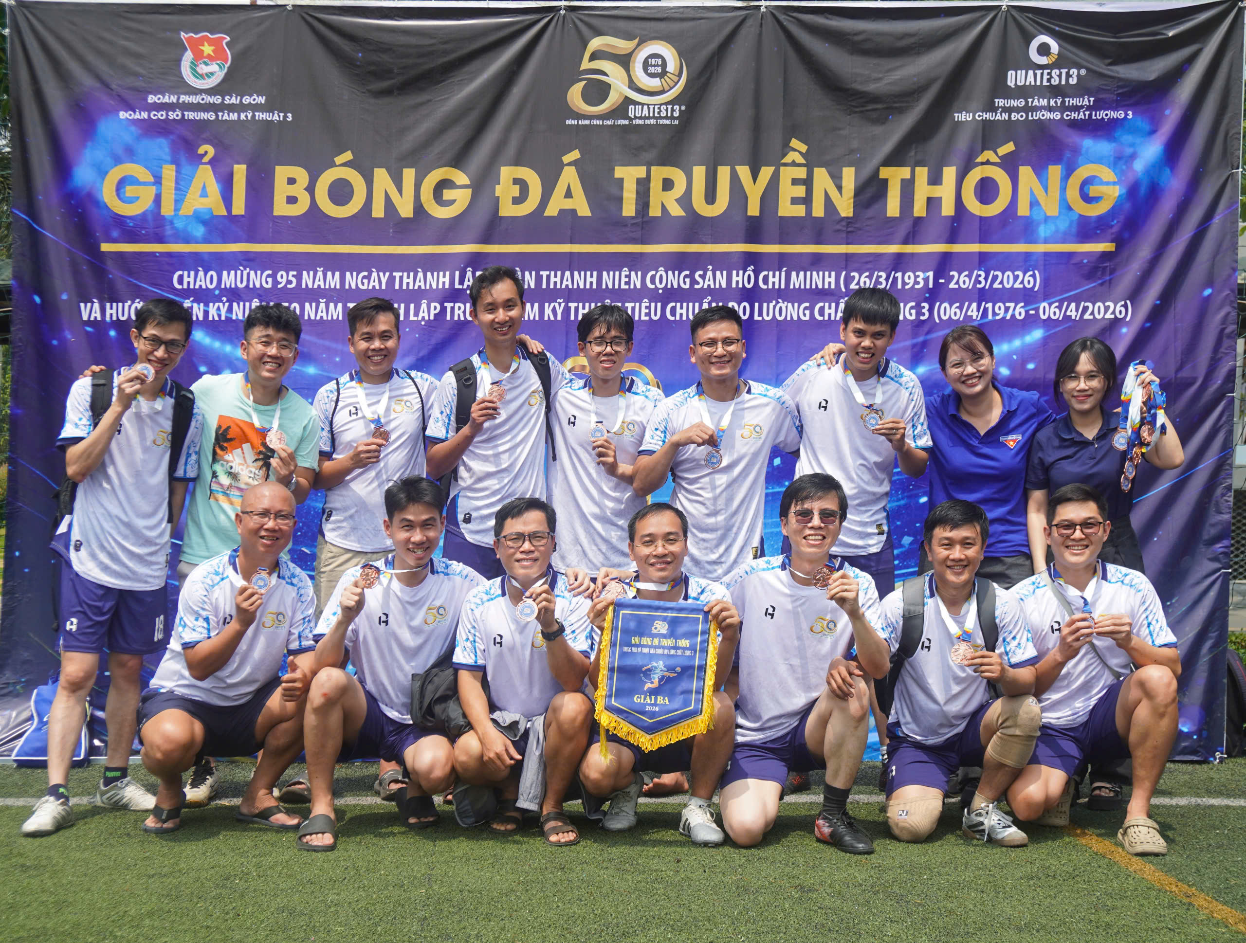 Sáng ngày 21/03/2026, tại sân bóng ĐH Sư phạm Kỹ thuật TP.HCM đã diễn ra Giải bóng đá mini truyền thống của Trung tâm Kỹ thuật Tiêu chuẩn Đo lường Chất lượng 3 (QUATEST 3) hướng đến kỷ niệm 95 năm ngày thành lập Đoàn Thanh Niên Cộng sản Hồ Chí Minh (26/03/1931-26/03/2026) và 50 năm ngày thành lập QUATEST 3 (06/04/1976 - 06/04/2026).