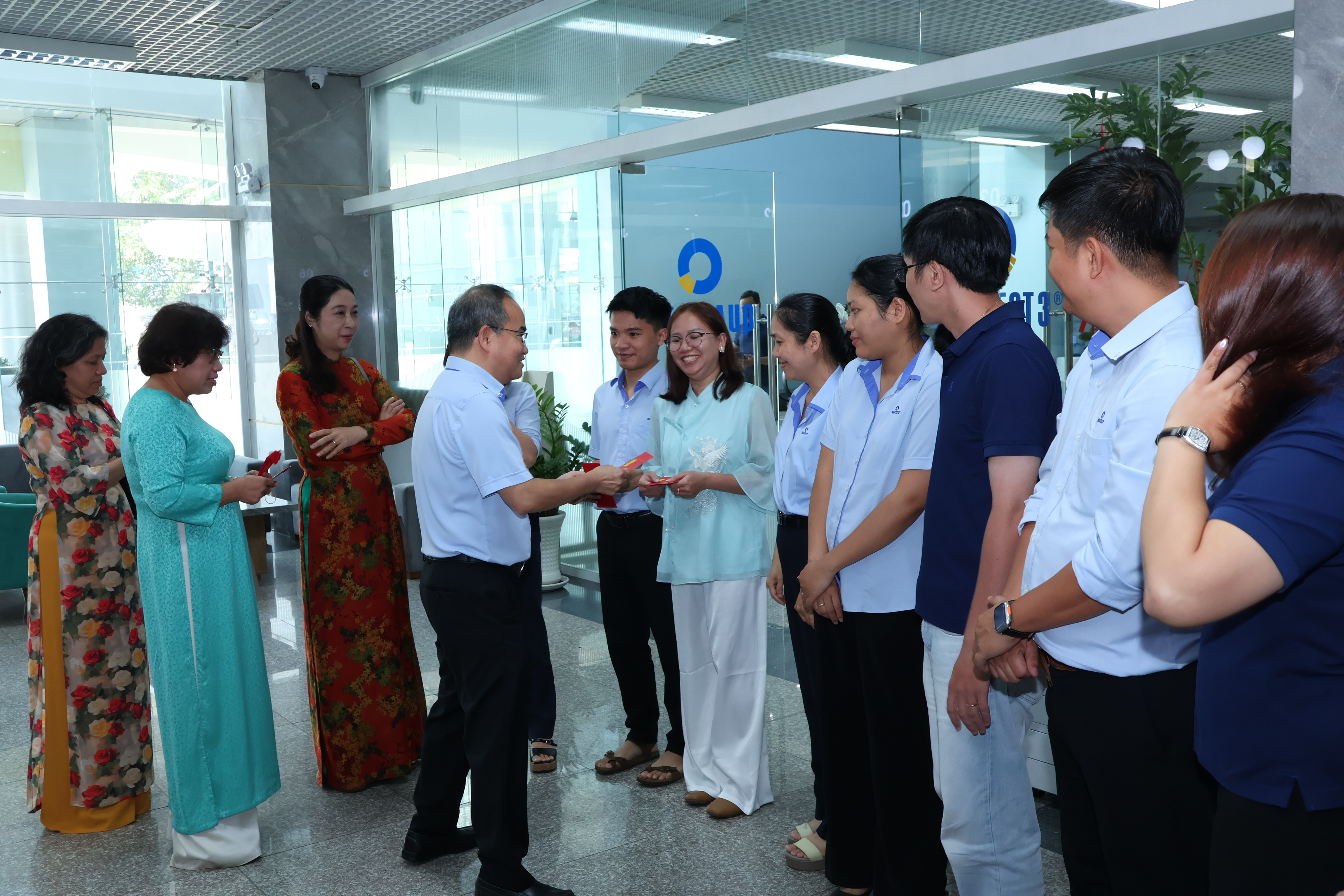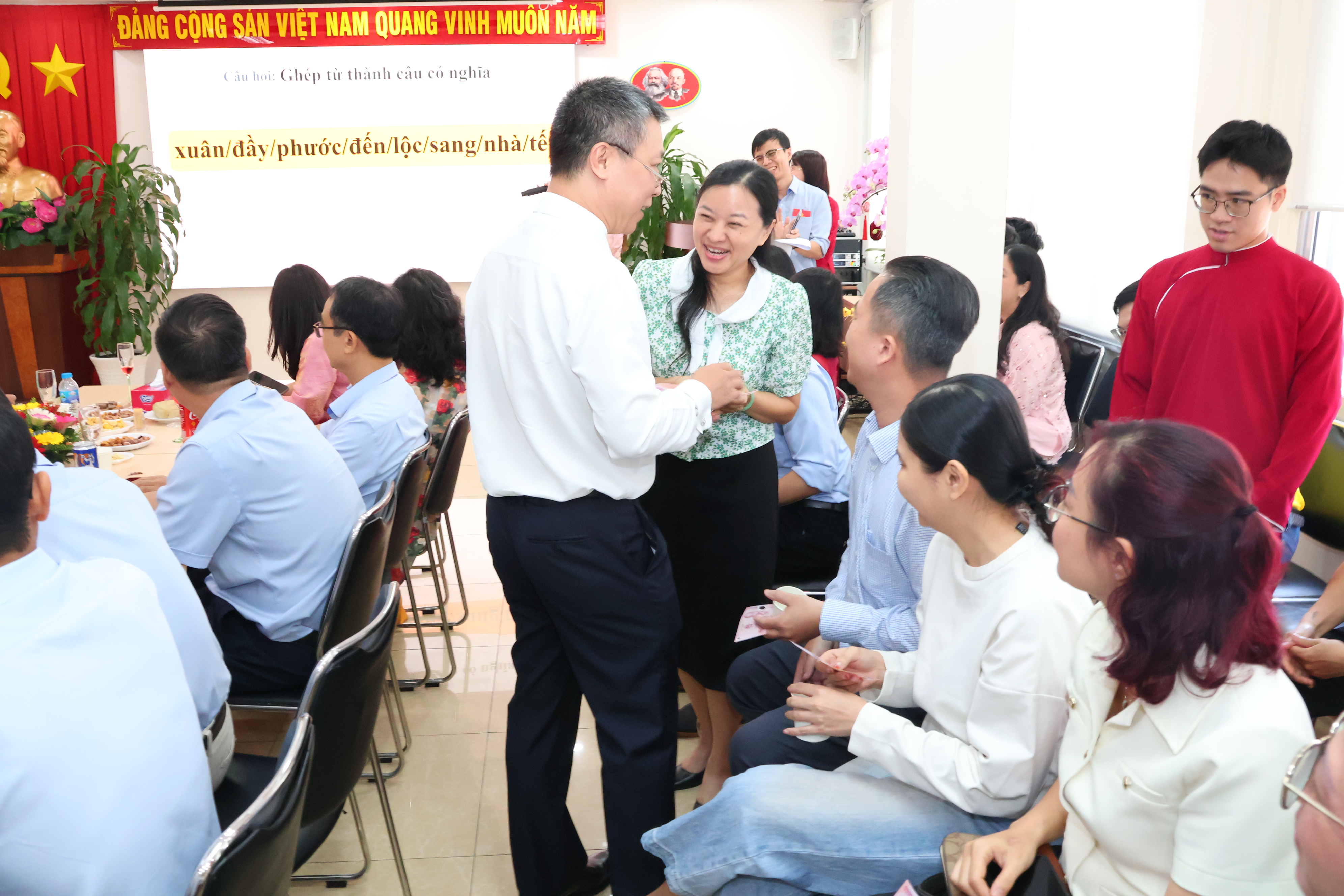 Ông Nguyễn Nhật Tâm - Bí Thư Đoàn Thanh Niên, đại diện các bạn trẻ của Trung tâm chúc Tết Ban Giám đốc và các anh, chị, em trong Trung tâm