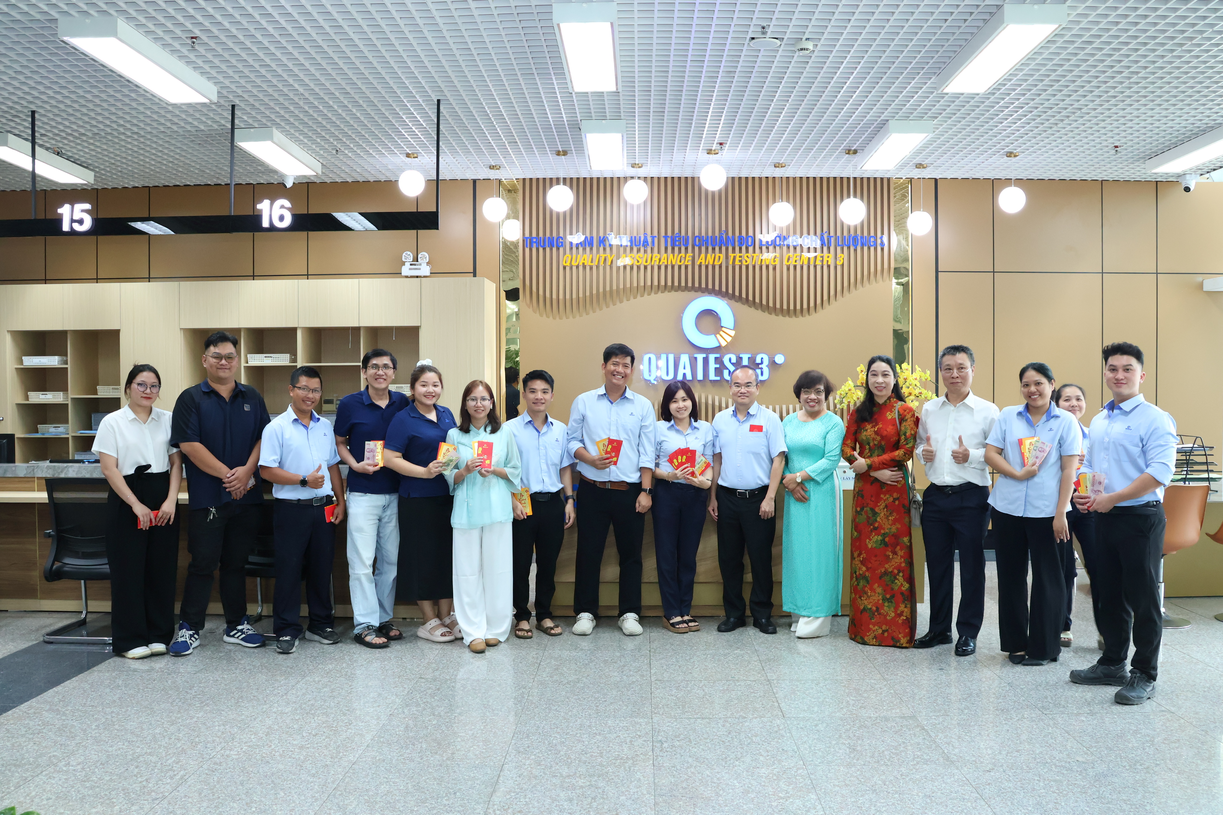 Buổi họp mặt đầu Xuân Bính Ngọ (2026) giữa Ban Giám đốc và cán bộ viên chức, người lao động của Trung tâm Kỹ thuật Tiêu chuẩn Đo lường Chất lượng 3 (QUATEST 3) tại các đầu cầu là văn phòng làm việc, khu thí nghiệm của QUATEST 3 (1. Trụ sở chính 49 Pasteur, phường Sài Gòn, TP.HCM; 2. Văn phòng làm việc tại tòa nhà 1196 đường B tháng Hai, phường Bình Thới, TP.HCM; 3. Văn Phòng và Phòng làm việc Khu Công nghiệp Cát Lái, phường Cát Lái, TP.HCM; 4. Phòng Giao dịch tại phường Trấn Biên, tỉnh Đồng Nai; 5. Chi nhánh tại Khối 8, phường Tân An, tỉnh Đắk Lắk) đã diễn ra sáng ngày 23/02, trong không khí vui vẻ, ấm áp, thân tình và gắn kết.