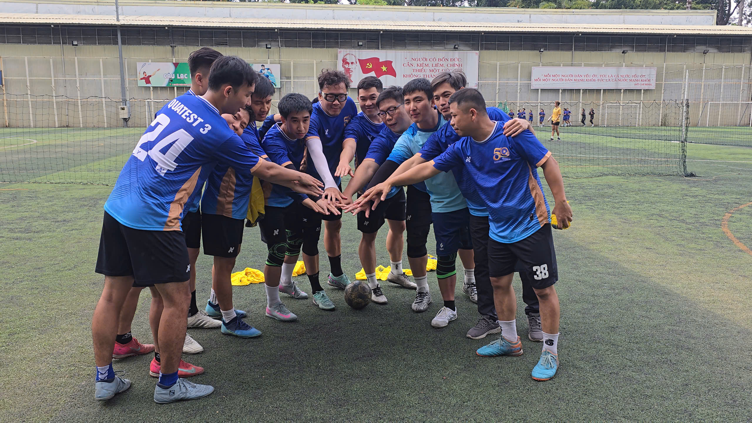 | Các cầu thủ Bóng đá của QUATEST 3 tham gia Giải Bóng đá công nhân, viên chức, lao động năm 2026. Các cầu thủ đã nỗ lực hết mình và vượt qua hai vòng loại diễn ra ngày 14/04 để lọt vào vòng tứ kết diễn ra ngày 18/04 |