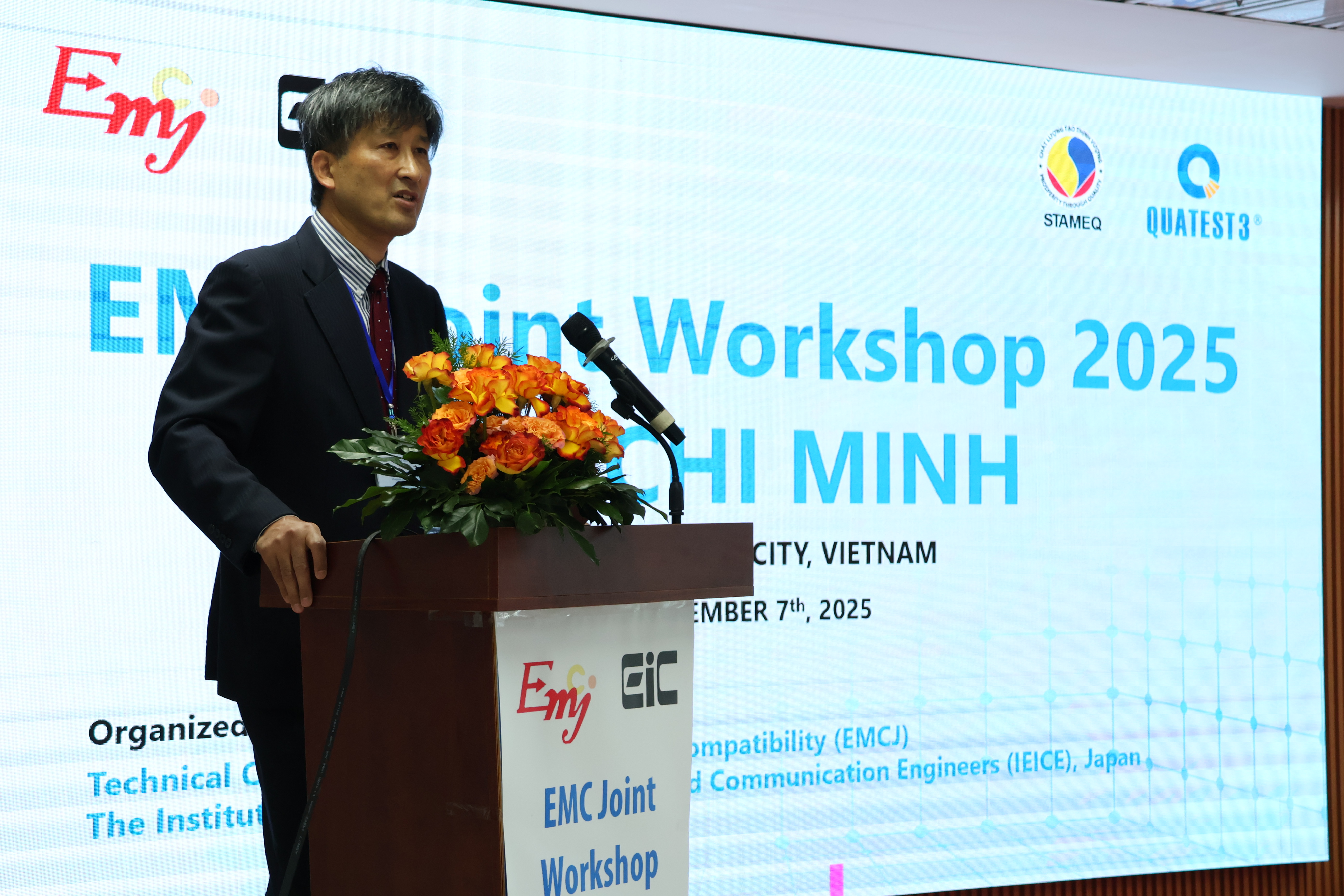 Trung tâm Kỹ thuật Tiêu chuẩn Đo lường Chất lượng 3 (QUATEST 3) và Tiểu ban Chuyên trách về Tương thích Điện từ (EMCJ) thuộc Viện Kỹ thuật Điện tử, Thông tin và Truyền thông Nhật Bản (IEICE) đã phối hợp tổ chức Phiên thảo luận chuyên đề về Tương thích điện từ (EMC) năm 2025 tại Tp. Hồ Chí Minh diễn ra tại Tòa nhà Bộ Khoa học & Công nghệ (địa chỉ: 1196 đường 3 tháng 2, phường Bình Thới, Tp. Hồ Chí Minh) ngày 07/11/2025 và buổi tham quan Phòng thử nghiệm EMC của QUATEST 3 tại Khu Thí nghiệm Biên Hòa, phường Trấn Biên, tỉnh Đồng Nai ngày 06/11/2025.