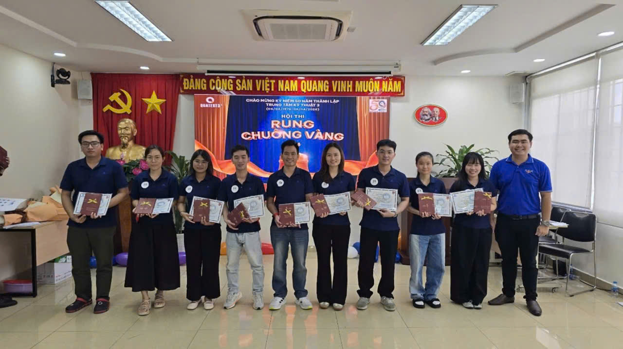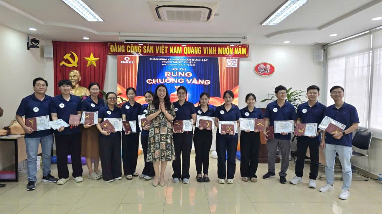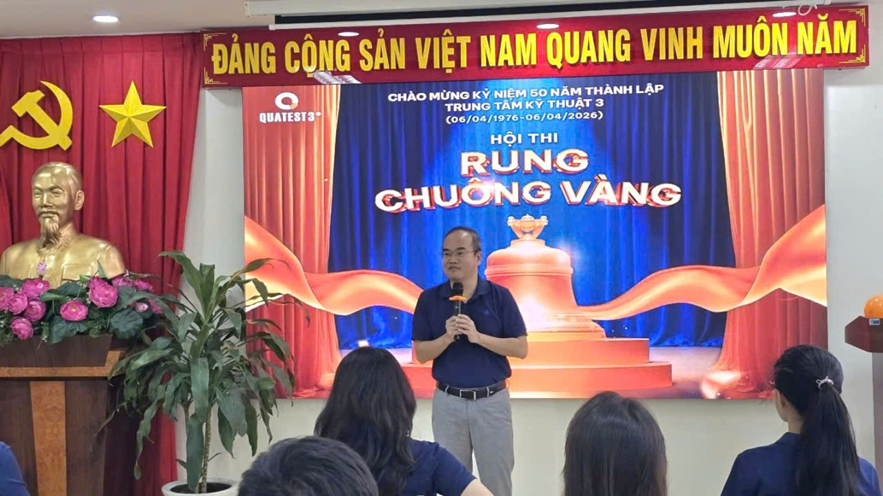 Nhân dịp Chào mừng Kỷ niệm 80 năm Cách mạng Tháng Tám và Quốc khánh 2.9, đồng thời hướng tới Chào mừng Kỷ niệm 50 năm (06/04/1976 - 06/04/2026) ngày thành lập Trung tâm Kỹ thuật Tiêu chuẩn Đo lường Chất lượng 3 (QUATEST 3), được sự đồng ý từ Ban Giám đốc Trung tâm, ngày 23/08 Đoàn Thanh niên cơ sở Trung tâm đã tổ chức Hội thi “Rung chuông vàng”, với chủ đề: “QUATEST 3 – 50 NĂM ĐỒNG HÀNH CÙNG CHẤT LƯỢNG, VỮNG BƯỚC TƯƠNG LAI”.